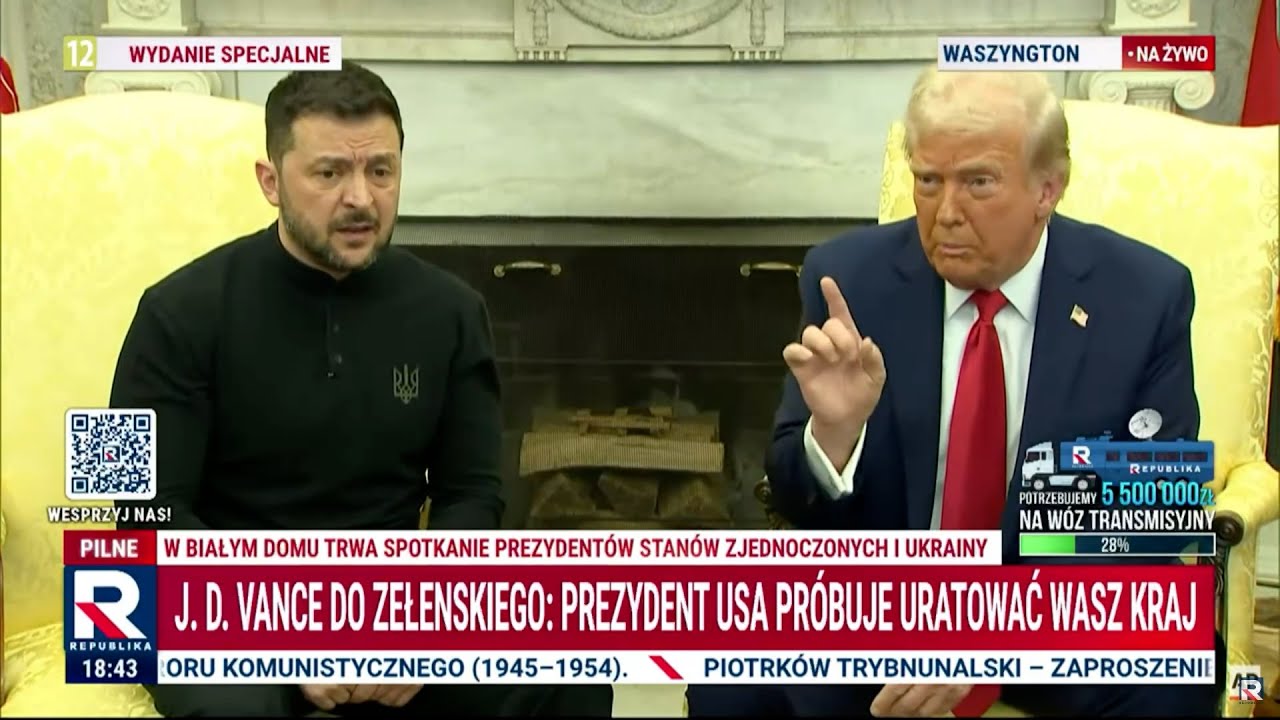 Wymiana eskalowała po tym, jak wiceprezydent JD Vance dołączył do dyskusji. Kiedy polski korespondent radiowy zapytał Trumpa o obawy o jego postrzeganą życzliwość wobec Putina, Trump zaprzeczył, by po stronie, ale zauważył, że „głęboka nienawiść” Zelensky’ego do Putina może utrudnić negocjowanie pokoju.